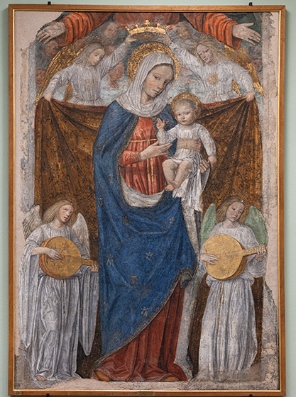 In questa sala sono riuniti tre nuclei distinti di affreschi rinascimentali.