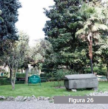Its location was likely to be near the place where St. Augustine’s conversion took place and close to St. Augustine’s “Sostra”, the debarkation point by Naviglio, where most marble blocks arrived to be carved for the Dome. The Garden’s Sostra was a big roofed storage for stone manufacturing, a sort of storage area for incoming stone blocks. Therefore, it cannot be ruled out that the location of these blocks in the Garden might correspond to their original site.